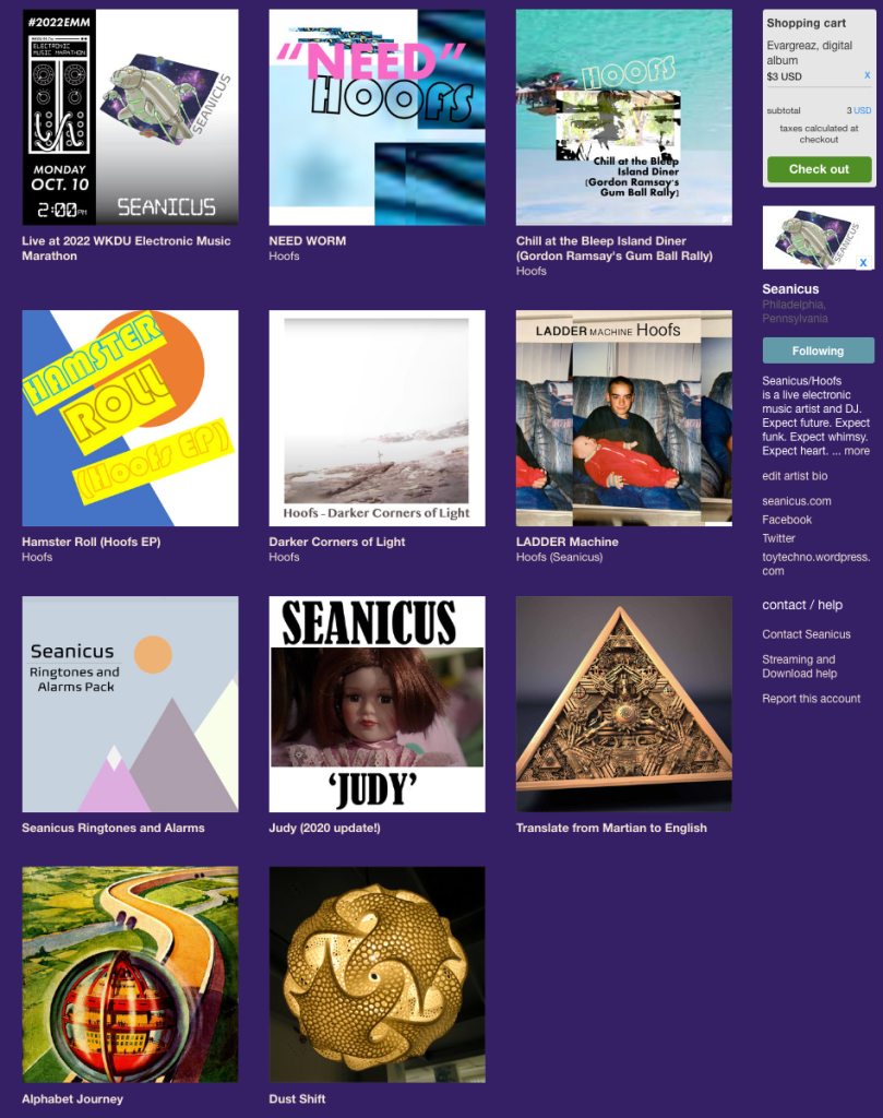 If ya’ll haven’t heard of Bandcamp and or are looking for more Seanicus or Hoofs’ originals, go check it out: Seanicus.bandcamp.com! Pssst! I just posted new music!